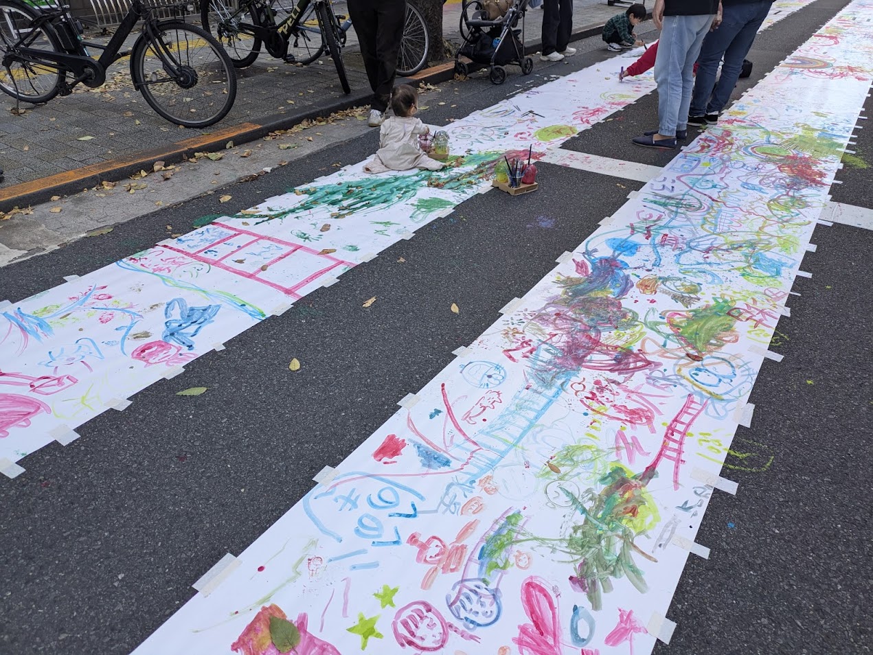 By the time I arrived, the giant canvas was already filled with colorful drawings.